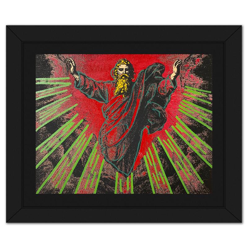 "The Creation" is a hand embellished limited edition silkscreen on canvas by Andy Warhol protege, Steve Kaufman (1960-2010), numbered AP 12/50 inverso and hand signed by the artist. This piece comes custom framed. Includes Letter of Authenticity. Measures approx. 13.5" x 16" (frame), 10.5" x 13" (image). This item requires special handling and may have a longer than usual turnaround.