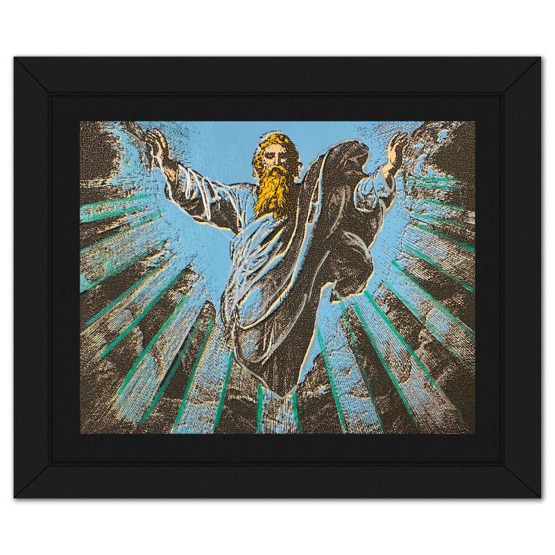"The Creation" is a hand embellished limited edition silkscreen on canvas by Andy Warhol protege, Steve Kaufman (1960-2010), numbered 14/50 inverso and hand signed by the artist. This piece comes custom framed. Includes Letter of Authenticity. Measures approx. 13.5" x 16" (frame), 10.5" x 13" (image). This item requires special handling and may have a longer than usual turnaround.