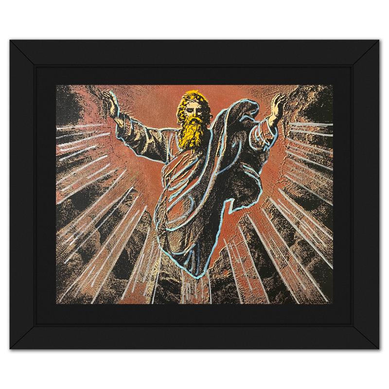 "The Creation" is a hand embellished limited edition silkscreen on canvas by Andy Warhol protege, Steve Kaufman (1960-2010), numbered AP 10/50 inverso and hand signed by the artist. This piece comes custom framed. Includes Letter of Authenticity. Measures approx. 13.5" x 16" (frame), 10.5" x 13" (image). This item requires special handling and may have a longer than usual turnaround.