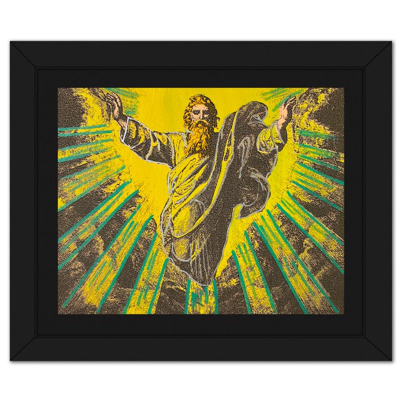"The Creation" is a hand embellished limited edition silkscreen on canvas by Andy Warhol protege, Steve Kaufman (1960-2010), numbered AP 7/50 inverso and hand signed by the artist. This piece comes custom framed. Includes Letter of Authenticity. Measures approx. 13.5" x 16" (frame), 10.5" x 13" (image). This item requires special handling and may have a longer than usual turnaround.