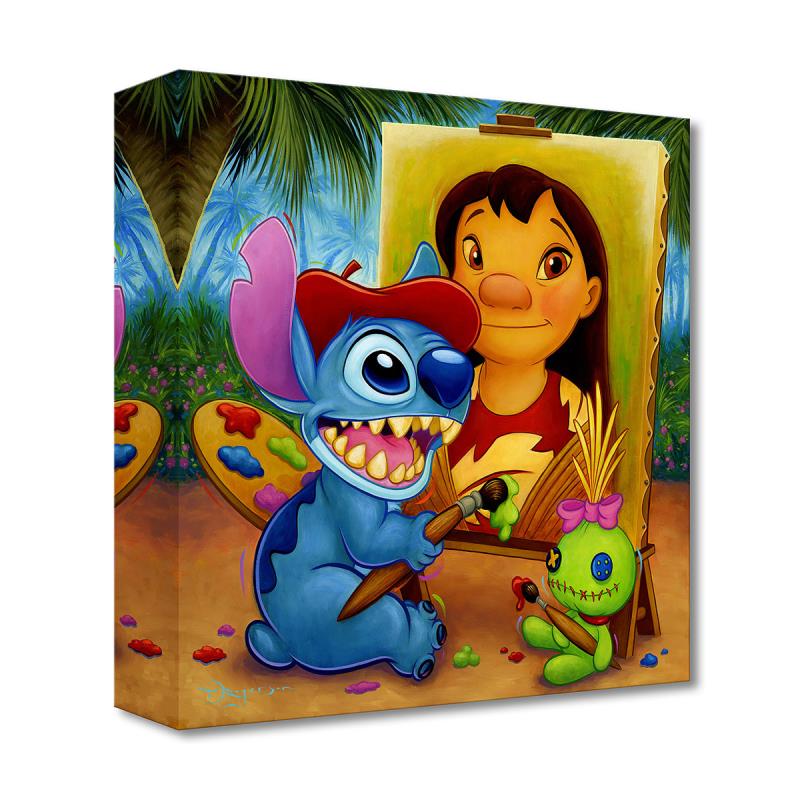 "The Mona Lilo" is a limited edition giclee on canvas by Tim Rogerson. Part of the Treasures collection from Disney Fine Art, this limited edition featuring Lilo & Stitch imagery comes gallery wrapped and ready to hang and comes with a certificate of authenticity. The edition is limited to 1500 pieces. Item measures approximately 14" x 14".