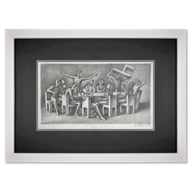"The New Chairman" is an original drawing on paper by Mark Kostabi, hand signed by the artist. This piece comes custom framed. Includes Certificate of Authenticity. Measures approx. 16" x 23" (frame), 10" x 17" (image). This item requires special handling and may have a longer than usual turnaround.