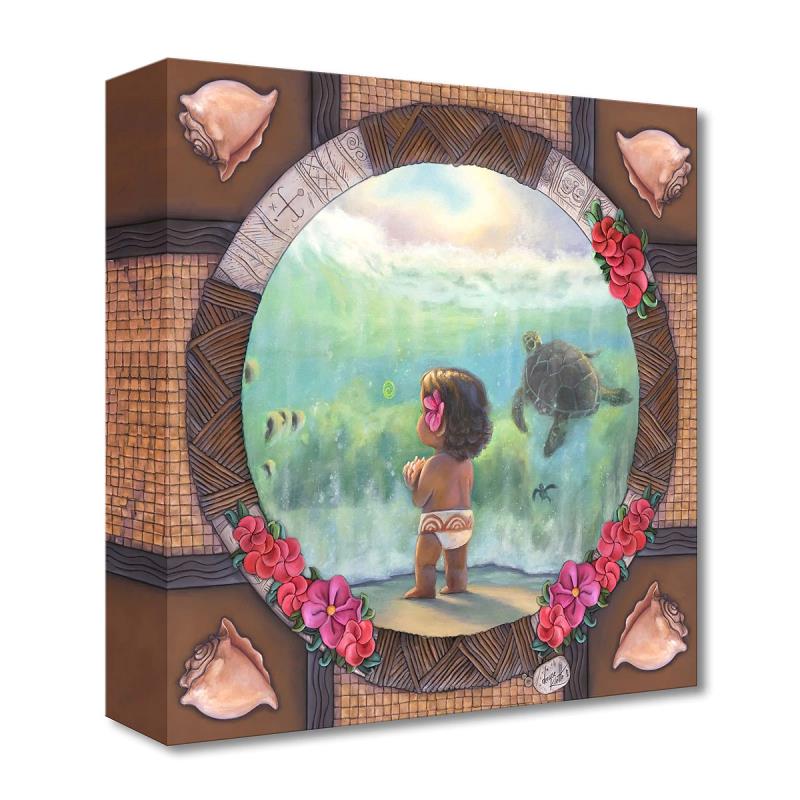 "The Ocean Chose You" is a limited edition giclee on canvas by Denyse Klette. Part of the Treasures collection from Disney Fine Art, this limited edition featuring Moana imagery comes gallery wrapped and ready to hang and comes with a certificate of authenticity. The edition is limited to 1500 pieces. Item measures approximately 14" x 14".