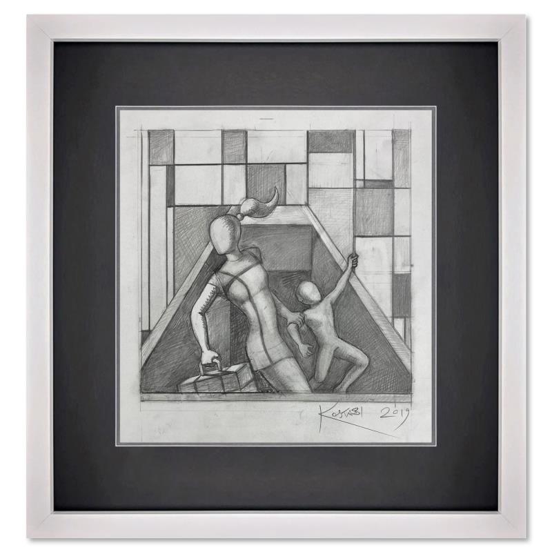 "The Pull of the Future" is an original drawing on paper by Mark Kostabi, hand signed by the artist. This piece comes custom framed. Includes Certificate of Authenticity. Measures approx. 16" x 14" (frame), 10" x 9" (image). This item requires special handling and may have a longer than usual turnaround.