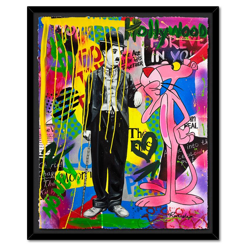 "Think in Pink" is a one-of-a-kind mixed media on deckle edge paper by Nastya Rovenskaya; hand signed by the artist. This piece comes custom framed and includes letter of authenticity. Measures approximately 36" x 30" (framed), 30" x 24" (image).