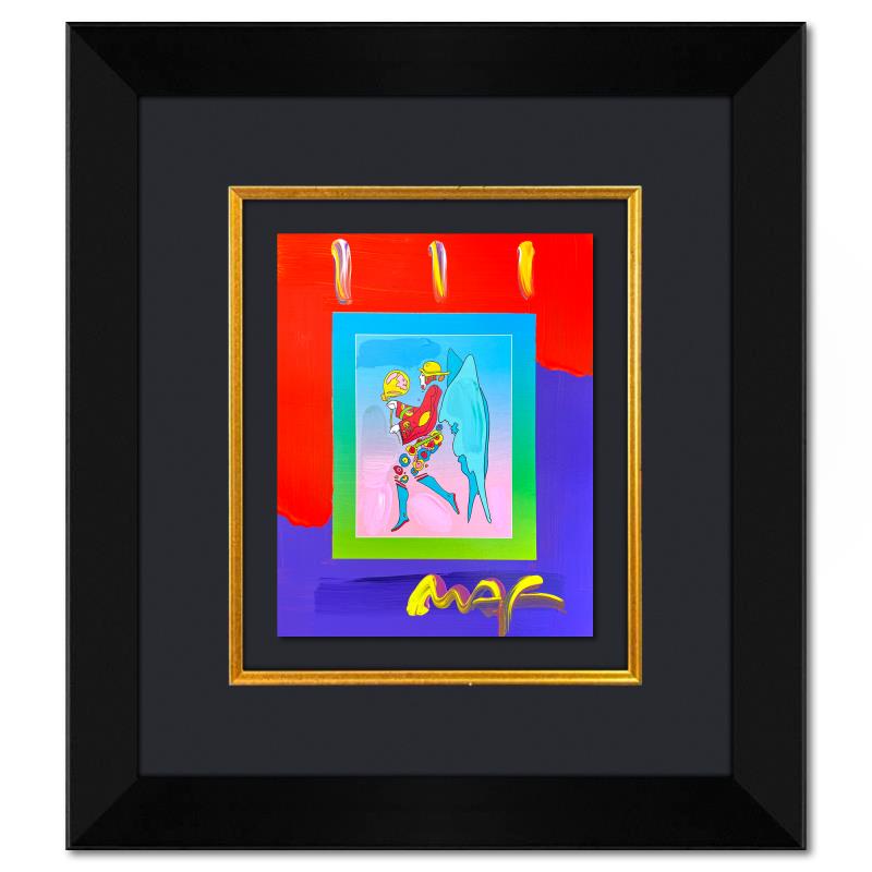 "Tip Toe Floating" is a hand signed one-of-a-kind acrylic mixed media on paper by Peter Max. The piece comes custom framed with a backside cutout to display Peter Max Studio registration number 313811 certifying authenticity. Measures approximately 26" x 23" (frame), 13" x 10" (image). This item requires special handling and may have a longer than usual turnaround.