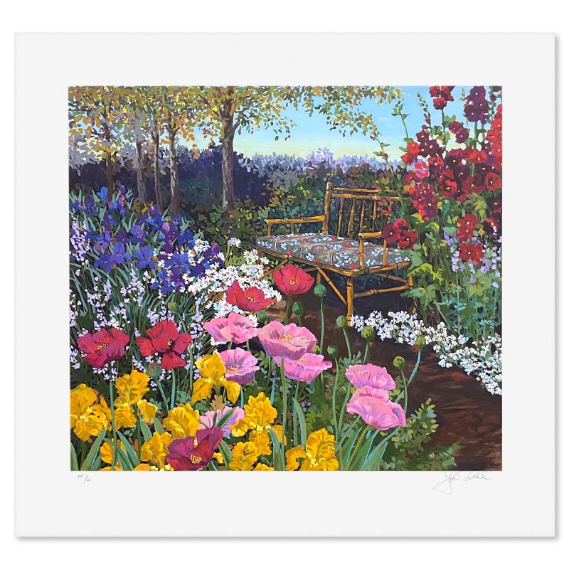 "Tranquility" is a limited edition printer's proof serigraph on paper by John Powell, numbered 1/21 and hand signed by the artist. Includes Letter of Authenticity. Measures approx. 23.5" x 25" (border), 18" x 20" (image).