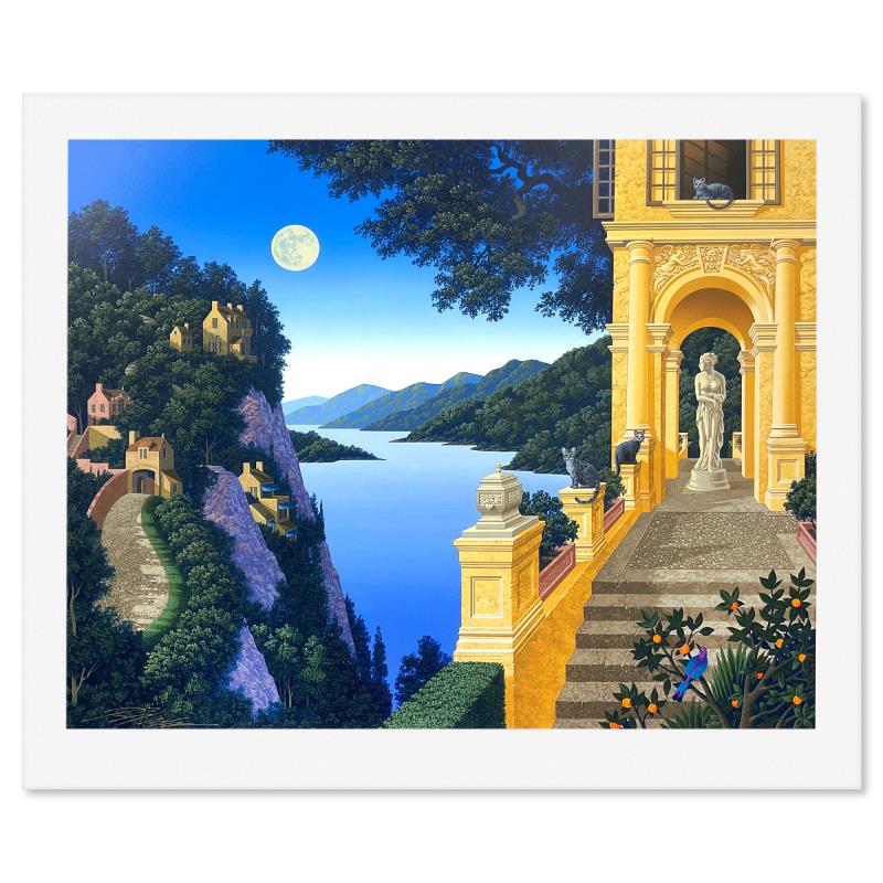 "Two Suitors" is a limited edition printer's proof serigraph on paper by Jim Buckels, numbered and hand signed by the artist. Includes Letter of Authenticity. Measures approx. 28.5" x 34" (border), 24" x 30" (image).