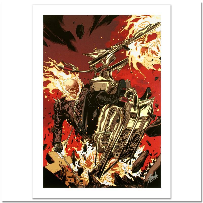 "Ultimate Avengers 2 #4" is a limited edition giclee on canvas with art by Leinil Francis Yu. Officially licensed by Marvel, this piece is numbered 2/99 and hand signed by creative legend Stan Lee (1922-2018). The piece comes with a certificate of authenticity. Measures approximately 27" x 18".
