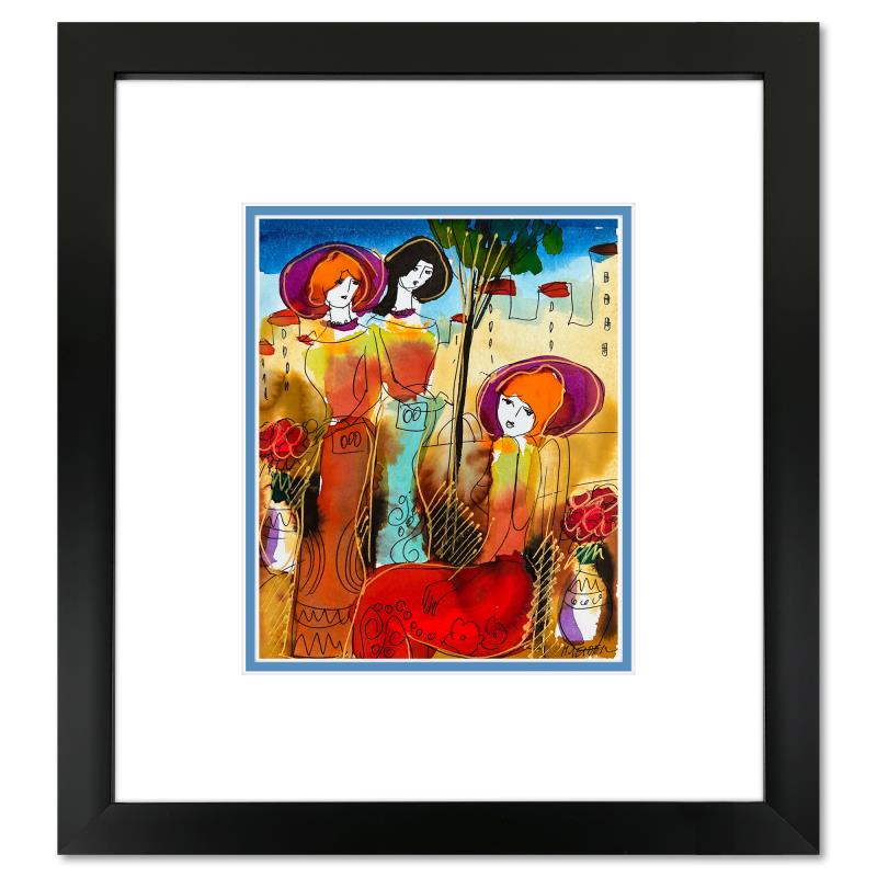 Moshe Leider, Framed Original Mixed Media Watercolor Painting, Hand Signed with Letter of Authenticity.