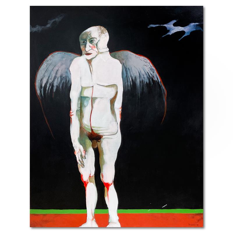 This is an original painting on stretched canvas by Milton Berwin (1925-2023), hand signed by the artist. Includes Letter of Authenticity. Measures approx. 54" x 42" (image).