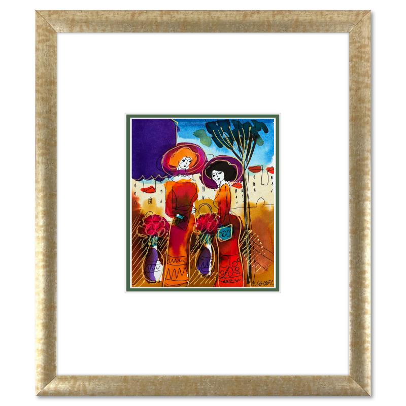 This is an original mixed media watercolor painting on paper by Moshe Leider. Hand signed by the artist, this piece comes custom framed and includes a Letter of Authenticity. Measures approximately 15" x 13.5" (frame), 8" x 6.5" (image).