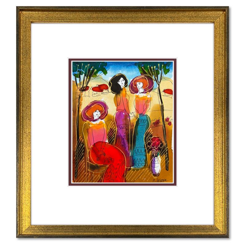 Moshe Leider, Framed Original Mixed Media Watercolor Painting, Hand Signed with Letter of Authenticity.