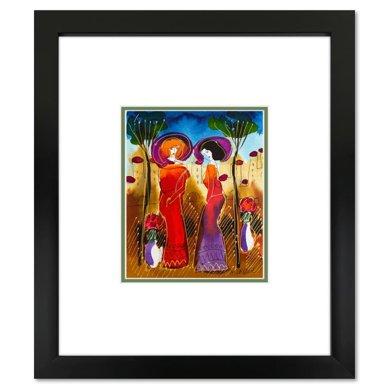 This is an original mixed media watercolor painting on paper by Moshe Leider. Hand signed by the artist, this piece comes custom framed and includes a Letter of Authenticity. Measures approximately 15" x 13.5" (frame), 8" x 6.5" (image).