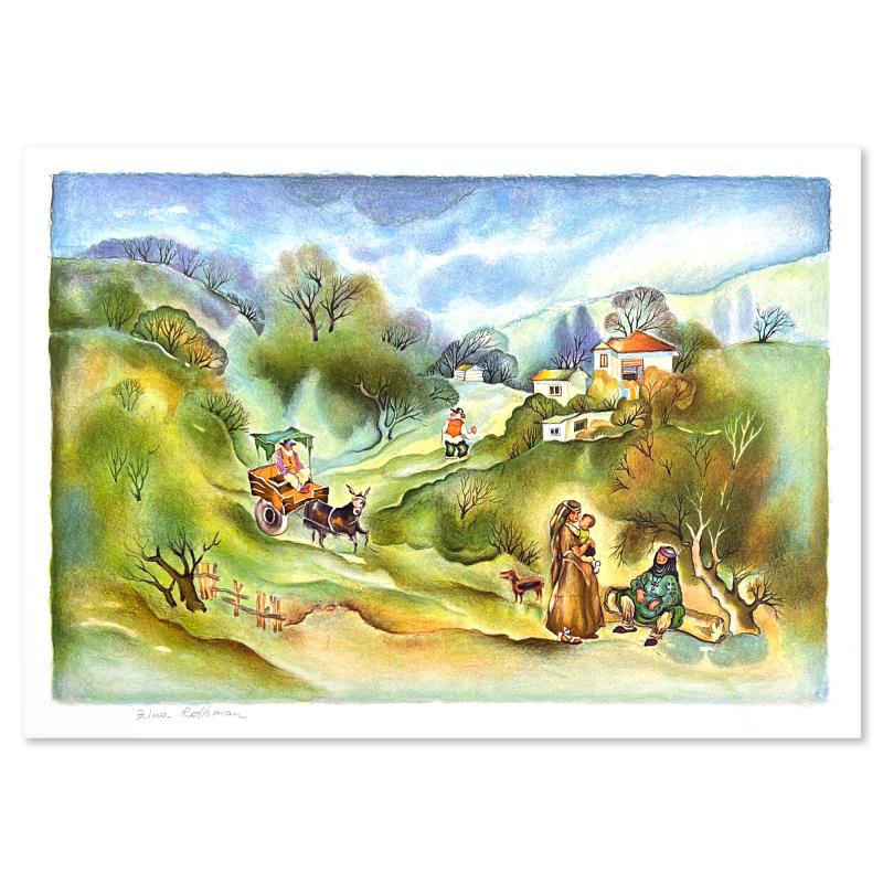 This is a limited edition serigraph on paper by Zina Roitman. The piece comes hand signed by the artist, numbered, and with a letter of authenticity. Measures approximately 11.5" x 17".