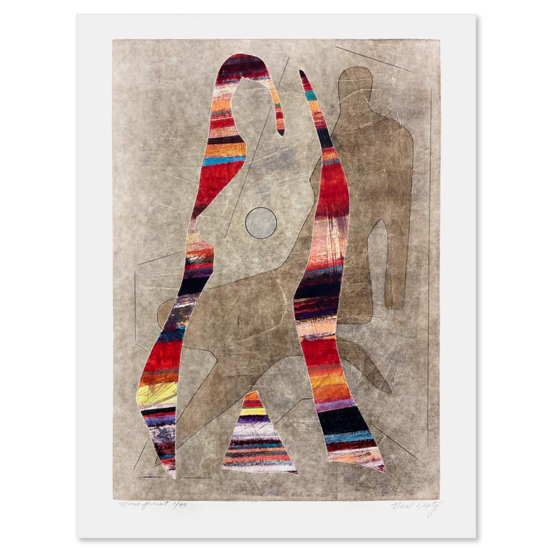 This is a limited edition monoprint on paper by Jean-Neal Doty (1941-2016), numbered 1/99 and hand signed by the artist. Includes Letter of Authenticity. Measures approx. 20" x 26" (border), 15" x 21.5" (image). There are creases along the top border that may be concealed when framed.