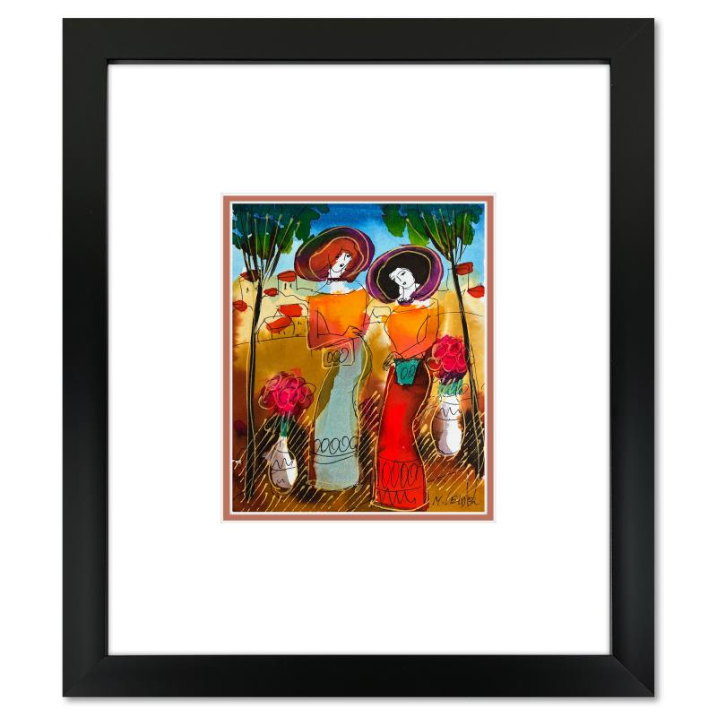 Moshe Leider, Framed Original Mixed Media Watercolor Painting, Hand Signed with Letter of Authenticity.