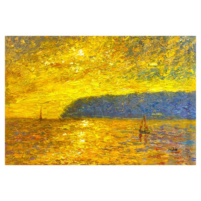 This is an original acrylic painting on canvas by Mani, hand signed by the artist. Includes Letter of Authenticity. Measures approx. 26" x 38" (image).