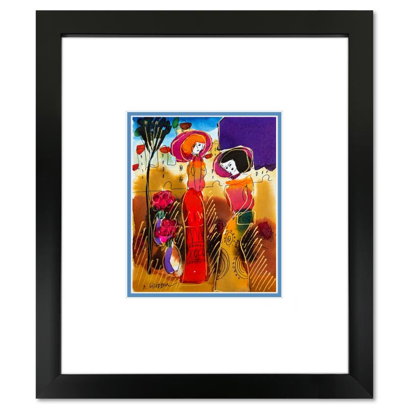 Moshe Leider, Framed Original Mixed Media Watercolor Painting, Hand Signed with Letter of Authenticity.