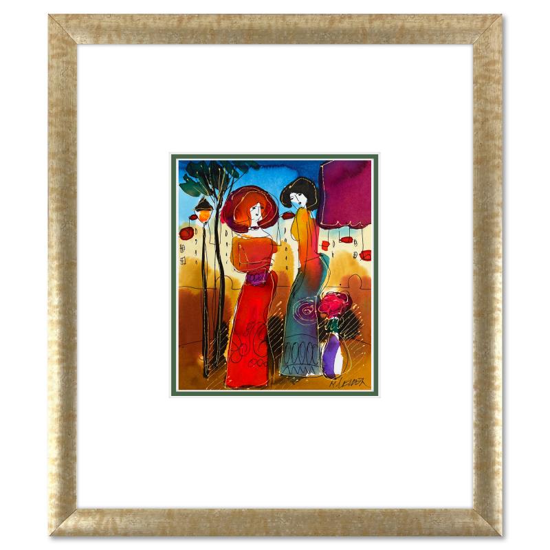 Moshe Leider, Framed Original Mixed Media Watercolor Painting, Hand Signed with Letter of Authenticity.