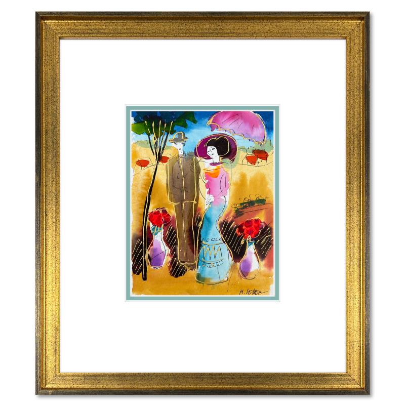 Moshe Leider, Framed Original Mixed Media Watercolor Painting, Hand Signed with Letter of Authenticity.
