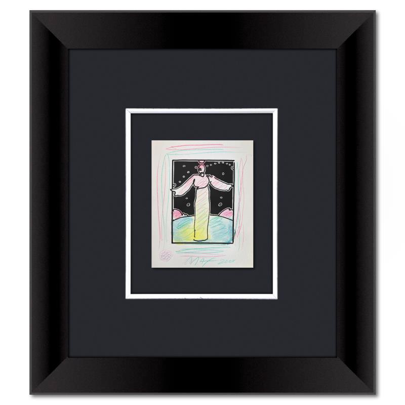 This is a one-of-a-kind mixed media on paper, hand signed by Peter Max. The piece comes custom framed with a backside cutout to display Peter Max Studio registration number 370854 certifying authenticity. Measures approximately 23" x 21" (frame), 9" x 7" (image). This item requires special handling and may have a longer than usual turnaround.