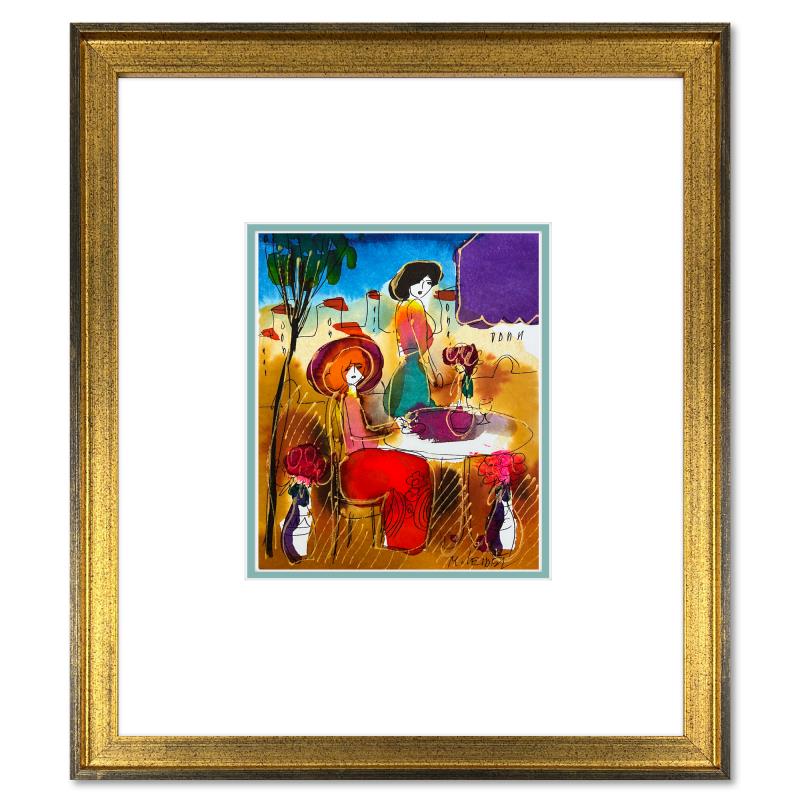 Moshe Leider, Framed Original Mixed Media Watercolor Painting, Hand Signed with Letter of Authenticity.