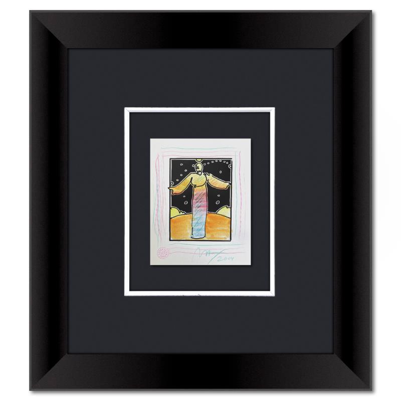 This is a one-of-a-kind mixed media on paper, hand signed by Peter Max. The piece comes custom framed with a backside cutout to display Peter Max Studio registration number 370855 certifying authenticity. Measures approximately 23" x 21" (frame), 9" x 7" (image). This item requires special handling and may have a longer than usual turnaround.