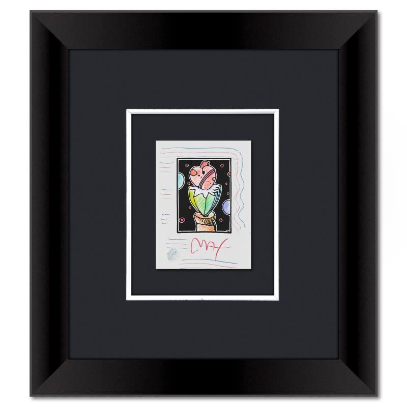 This is a one-of-a-kind mixed media on paper, hand signed by Peter Max. The piece comes custom framed with a backside cutout to display Peter Max Studio registration number 340405 certifying authenticity. Measures approximately 22.5" x 20" (frame), 8.5" x 6" (image). This item requires special handling and may have a longer than usual turnaround.