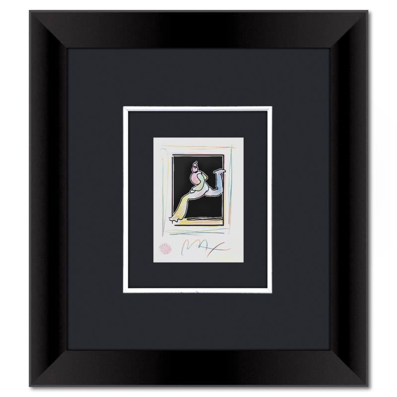 This is a one-of-a-kind mixed media on paper, hand signed by Peter Max. The piece comes custom framed with a backside cutout to display Peter Max Studio registration number 372295 certifying authenticity. Measures approximately 22.5" x 20" (frame), 8.5" x 6" (image). This item requires special handling and may have a longer than usual turnaround.
