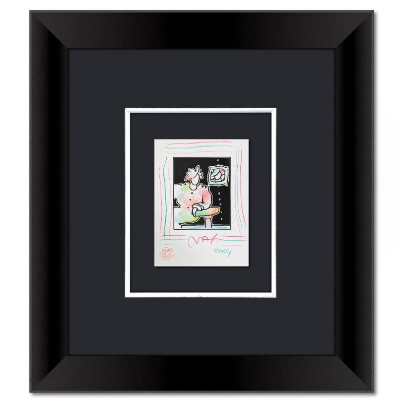 This is a one-of-a-kind mixed media on paper, hand signed by Peter Max. The piece comes custom framed with a backside cutout to display Peter Max Studio registration number 339487 certifying authenticity. Measures approximately 22.5" x 20" (frame), 8.5" x 6" (image). This item requires special handling and may have a longer than usual turnaround.