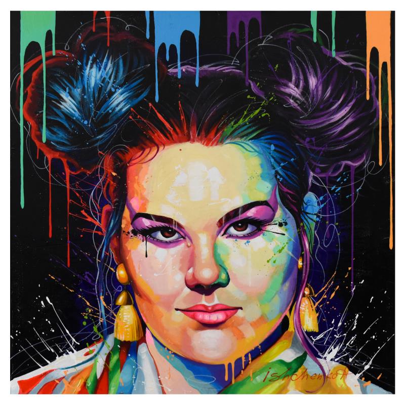 This is an original acrylic painting on canvas by Alexander Ishchenko, hand signed by the artist. Includes Letter of Authenticity. Measures approx. 32" x 32" (image).
