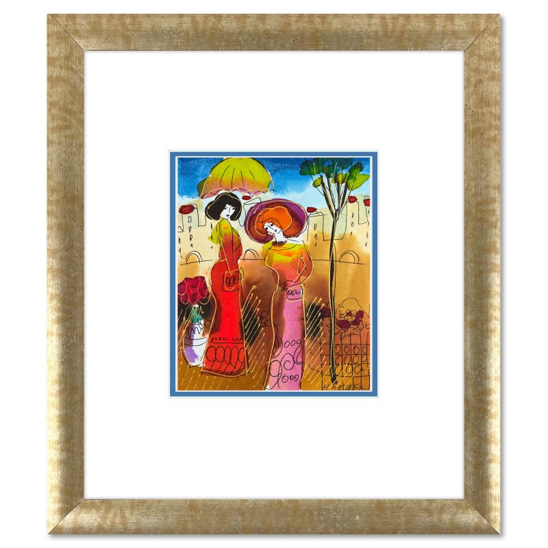 Moshe Leider, Framed Original Mixed Media Watercolor Painting, Hand Signed with Letter of Authenticity.