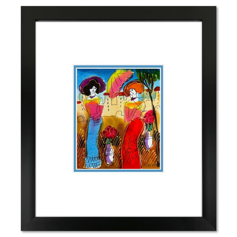 Moshe Leider, Framed Original Mixed Media Watercolor Painting, Hand Signed with Letter of Authenticity.