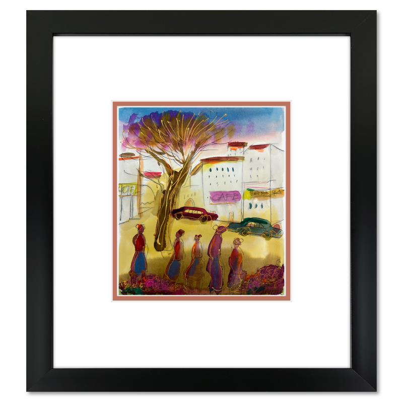 Moshe Leider, Framed Original Mixed Media Watercolor Painting, Hand Signed with Letter of Authenticity.