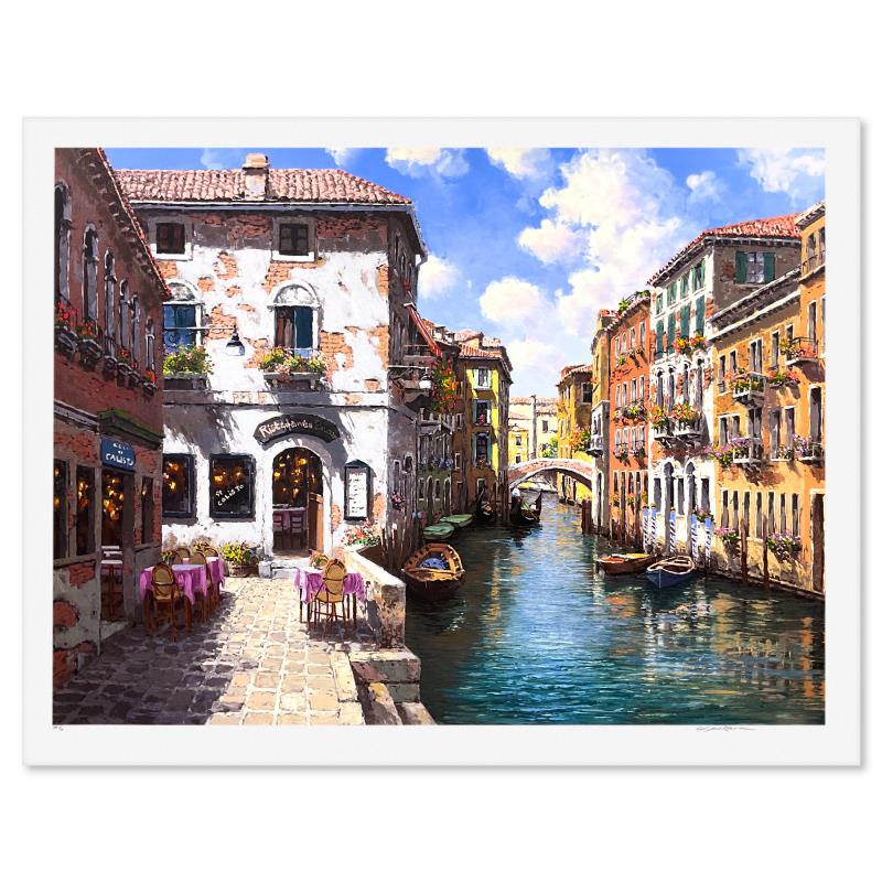 "Venetian Colors" is a limited edition printer's proof serigraph on paper by Sam Park, numbered 1/4 and hand signed by the artist. Includes Letter of Authenticity. Measures approx. 38.5" x 50" (border), 34" x 46" (image).