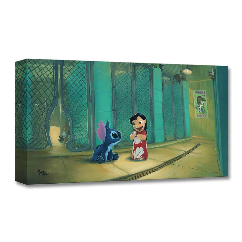 "Welcome to the Family" is a limited edition giclee on canvas by Rob Kaz. Part of the Treasures collection from Disney Fine Art, this limited edition featuring Lilo & Stitch imagery comes gallery wrapped and ready to hang and comes with a certificate of authenticity. The edition is limited to 1500 pieces. Item measures approximately 10" x 20".