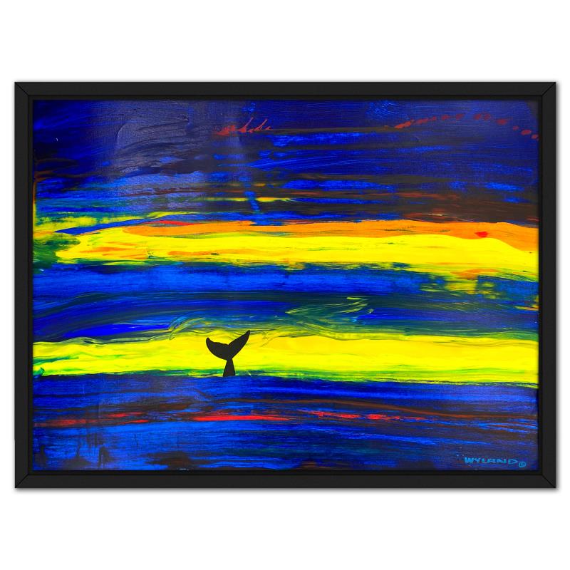 "Whale Tail" is an original acrylic painting on canvas by Wyland, hand signed by the artist. This piece comes custom framed. Includes Letter of Authenticity. Measures approx. 39" x 52" (frame), 36" x 48" (image). This item requires special handling and may have a longer than usual turnaround.
