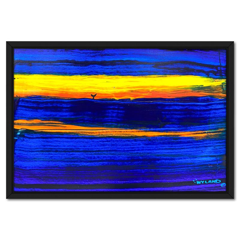 "Whale Tail" is an original acrylic painting on canvas by Wyland, hand signed by the artist. This piece comes custom framed. Includes Letter of Authenticity. Measures approx. 29.5" x 41.5" (frame), 28" x 40" (image). This item requires special handling and may have a longer than usual turnaround.