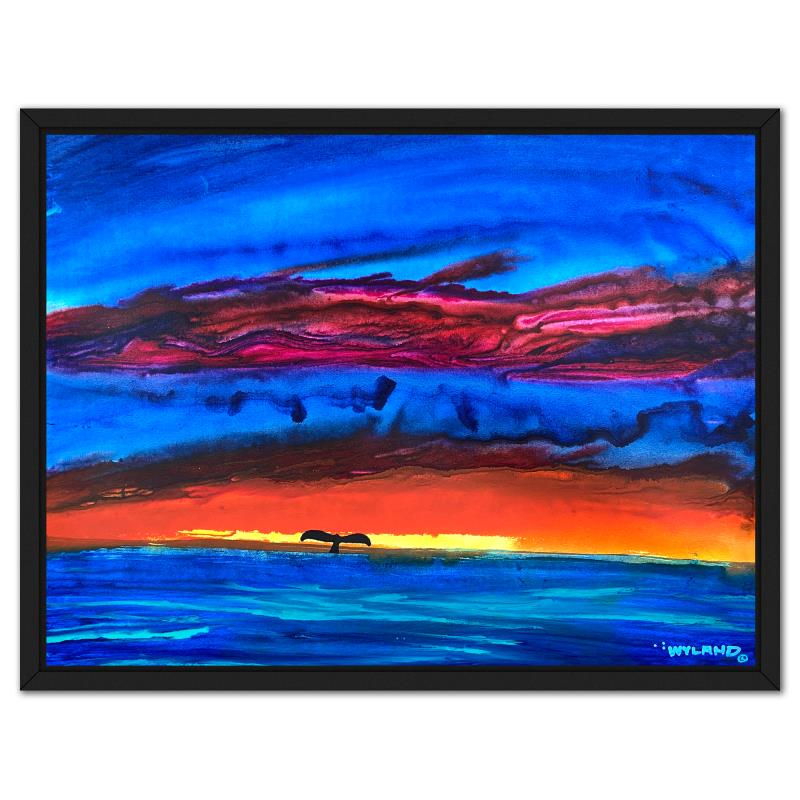 "Whale Tail"is an original acrylic painting on canvas by Wyland, hand signed by the artist. This piece comes custom framed. Includes Letter of Authenticity. Measures approx. 33" x 43" (frame), 30" x 40" (image). This item requires special handling and may have a longer than usual turnaround.