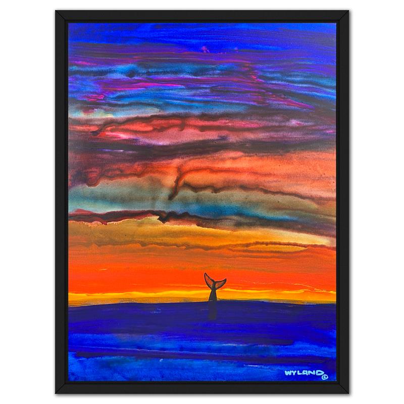 "Whale Tail" is an original acrylic painting on canvas by Wyland, hand signed by the artist. This piece comes custom framed. Includes Letter of Authenticity. Measures approx. 43" x 33" (frame), 40" x 30" (image). This item requires special handling and may have a longer than usual turnaround.