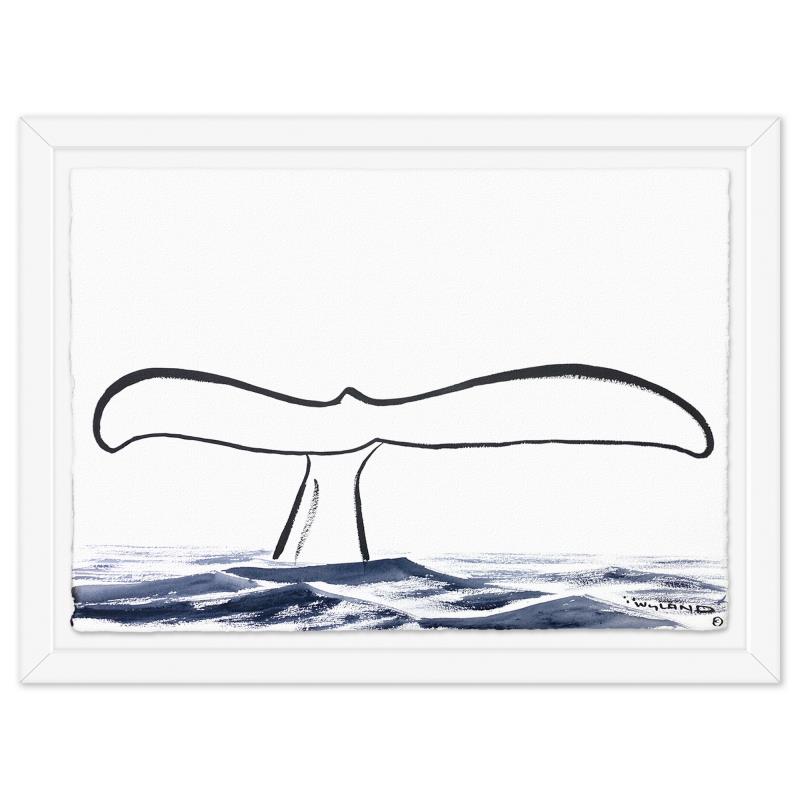 Wyland, "Whale Tail" Framed Original Sumi Ink Painting, Hand Signed with Letter of Authenticity.