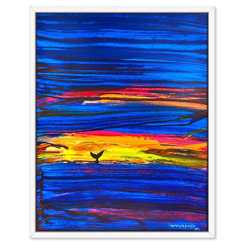 "Whale Tail"is an original acrylic painting on canvas by Wyland, hand signed by the artist. This piece comes custom framed. Includes Letter of Authenticity. Measures approx. 40.5" x 33" (frame), 37.5" x 30" (image). This item requires special handling and may have a longer than usual turnaround.