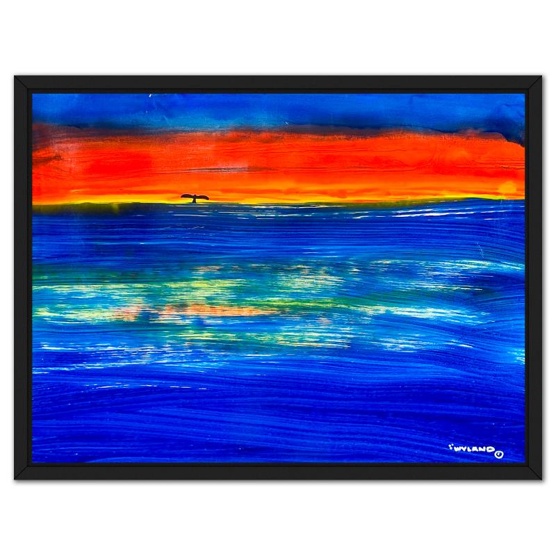 "Whale Tail"is an original acrylic painting on canvas by Wyland, hand signed by the artist. This piece comes custom framed. Includes Letter of Authenticity. Measures approx. 36" x 46" (frame), 33" x 43" (image). This item requires special handling and may have a longer than usual turnaround.