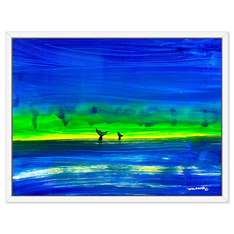 Wyland, "Whale Tails" Framed Original Acrylic Painting on Canvas, Hand Signed with a Letter of Authenticity.