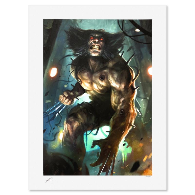 "Wolverine: Weapon X" is a limited edition giclee on paper from Marvel Comics and Richard Luong, PP numbered 3/4 and bearing the authorized signature of the artist. Includes Letter of Authenticity. Measures approx. 24" x 18" (border) 20" x 14" (image).