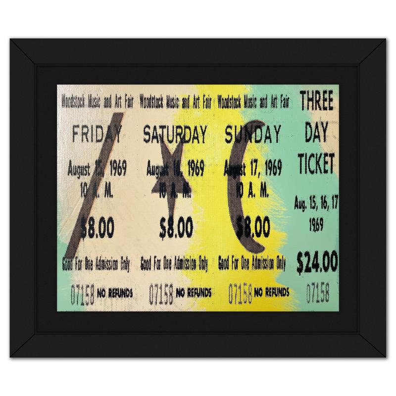 Steve Kaufman (1960-2010), "Woodstock Ticket" Framed Hand Embellished Limited Edition Silscreen, Numbered 35/50 Inverso and Hand Signed with Letter of Authenticity
