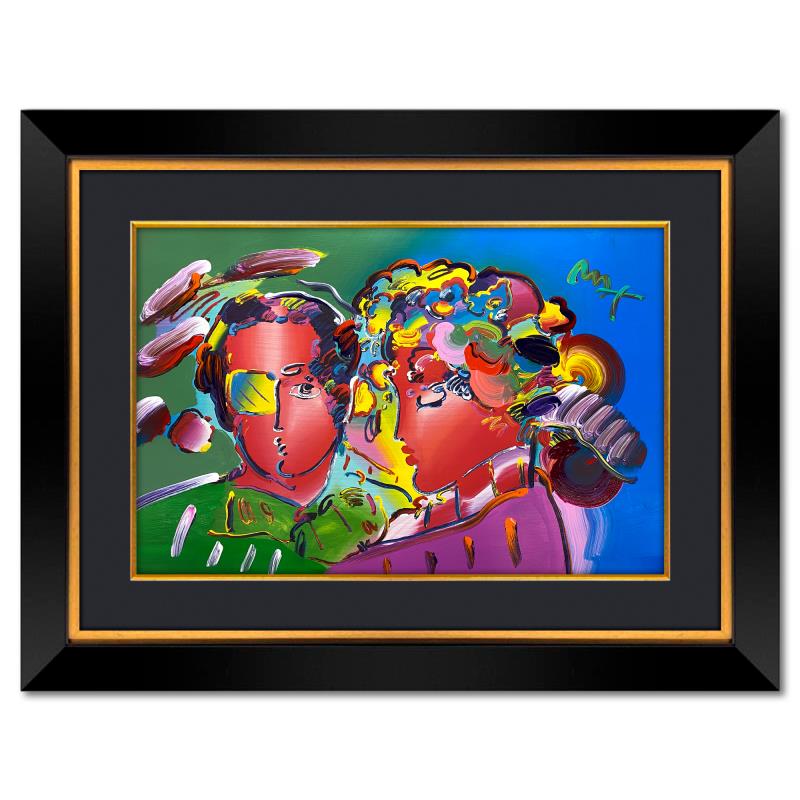 "Zero in Love" is a one-of-a-kind mixed media on paper, hand signed by Peter Max. The piece comes custom framed with a backside cutout to display Peter Max Studio registration number 232731 certifying authenticity. Measures approximately 36" x 48" (frame), 24" x 36" (image). This item requires special handling and may have a longer than usual turnaround.